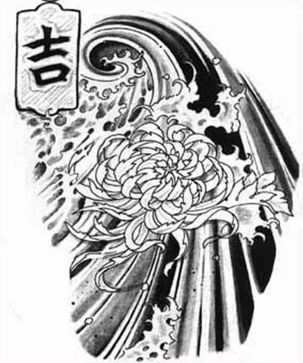 日式大板雾满背纹身手稿