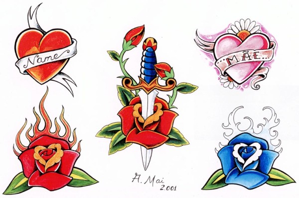 《欧美纹身手稿大全》高清扫描版 Hearts tattoo