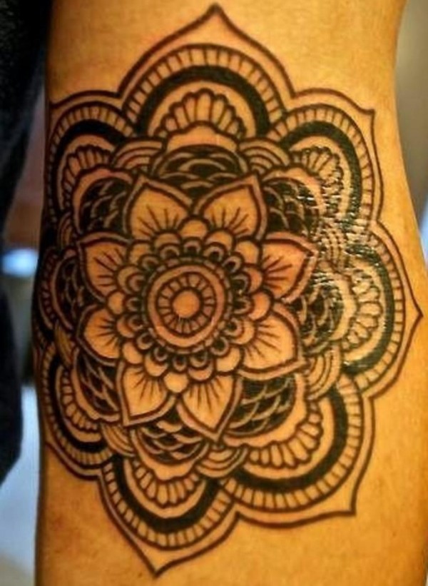 手臂黑色的曼陀罗花纹身图案