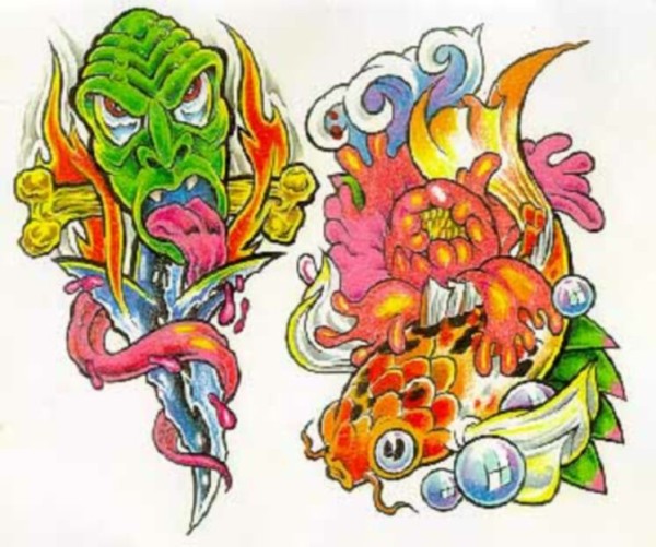经典的一组oldschool风格的纹身彩图作品