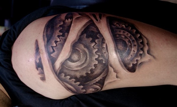 黑白齿轮机器人手臂纹身图案