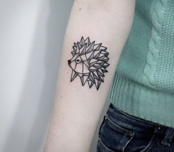 手臂有趣的几何折纸刺猬点刺纹身图案