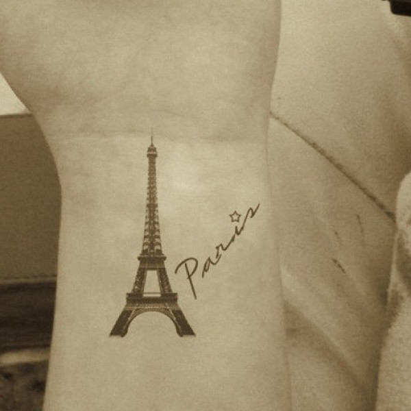 优雅的巴黎埃菲尔铁塔手臂纹身图案