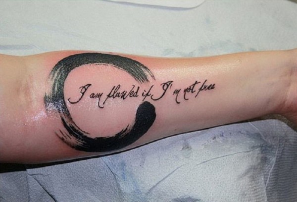 手臂酷酷的黑色字母与水墨圆圈纹身图案