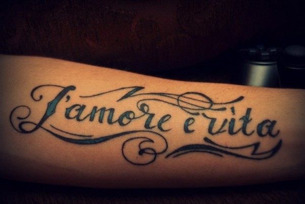 手臂浪漫的法国字母纹身图案
