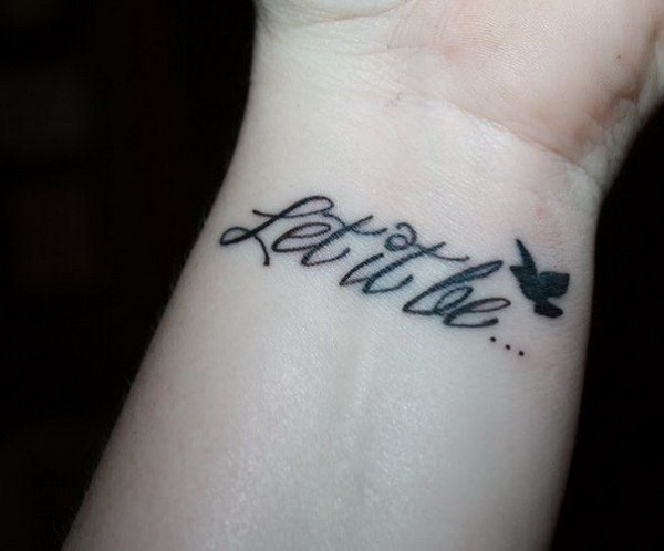 手腕黑色的小鸟和字母纹身图案
