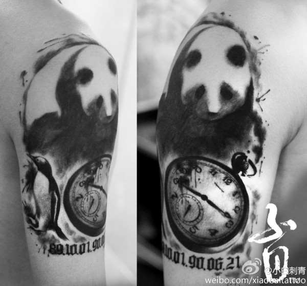 熊猫,企鹅,钟表 三个不同元素的黑灰风格 @十ZEE十 作品