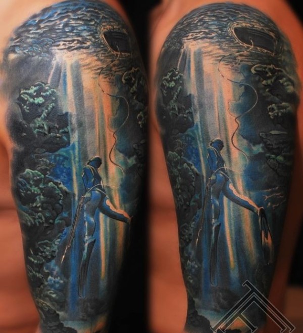 大臂写实风格水下风景纹身图案