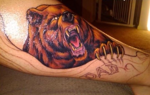 手臂上七彩愤怒的熊纹身图案