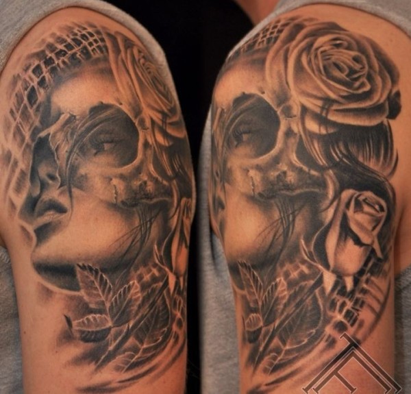 手臂可怕的死亡女孩纹身图案