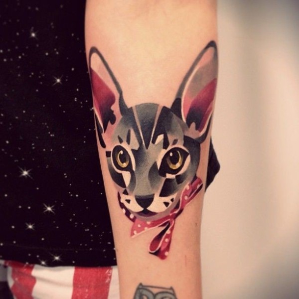 美丽的水彩猫手臂纹身图案
