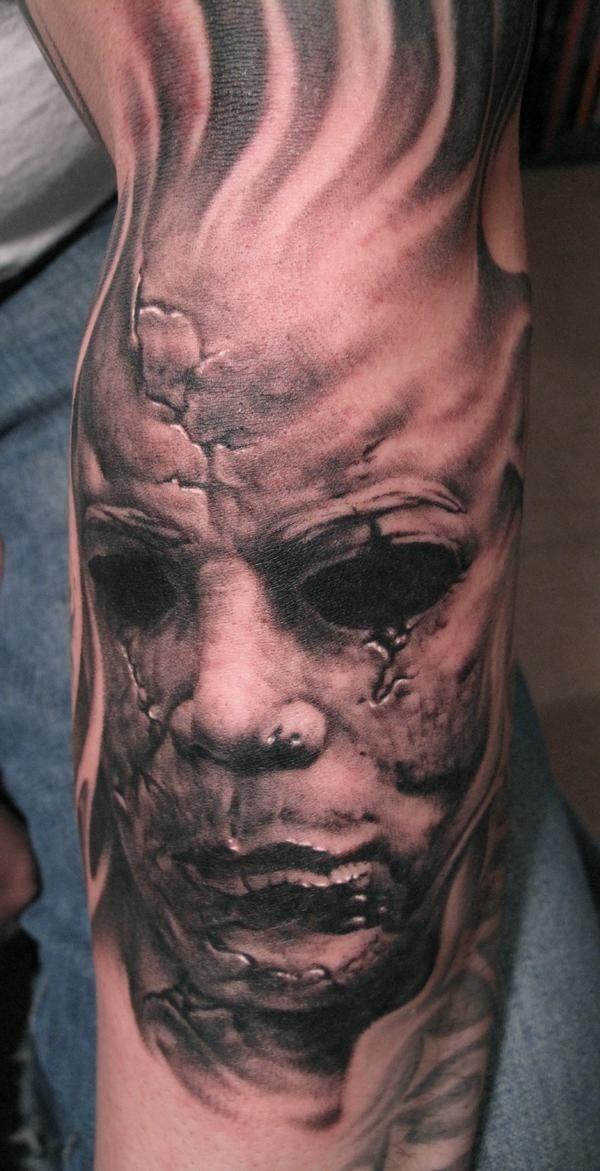 手臂上古典恐怖风格人脸纹身图案