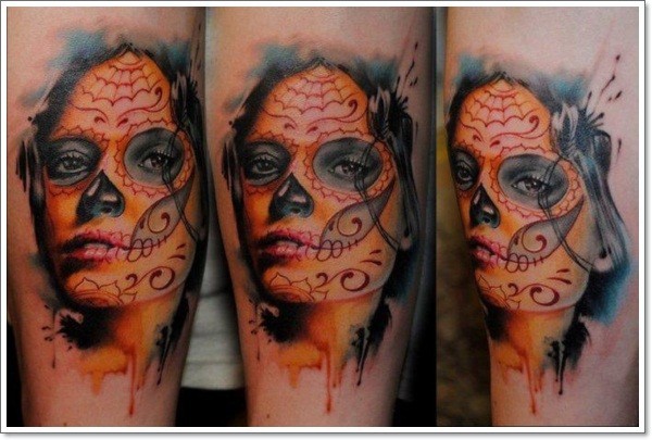 水彩的死亡女郎肖像手臂纹身图案
