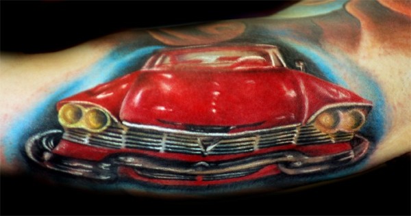 奇妙的红色赛车手臂纹身图案