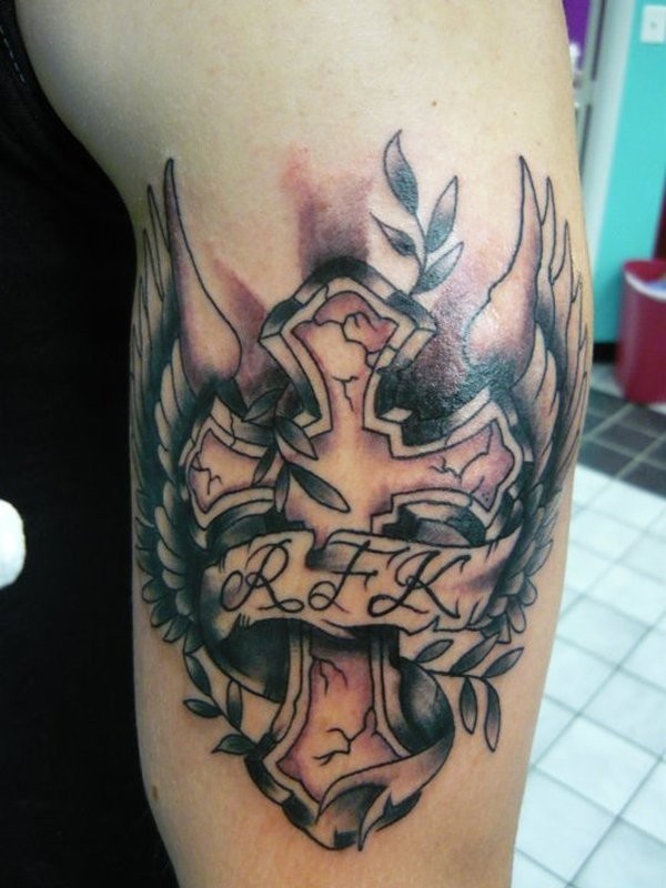 十字架和字母翅膀手臂纹身图案
