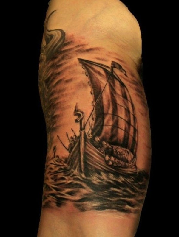 手臂海盗船个性纹身图案
