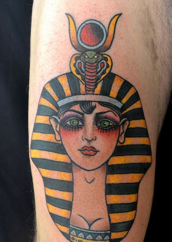 手臂上的彩色埃及神像纹身图案