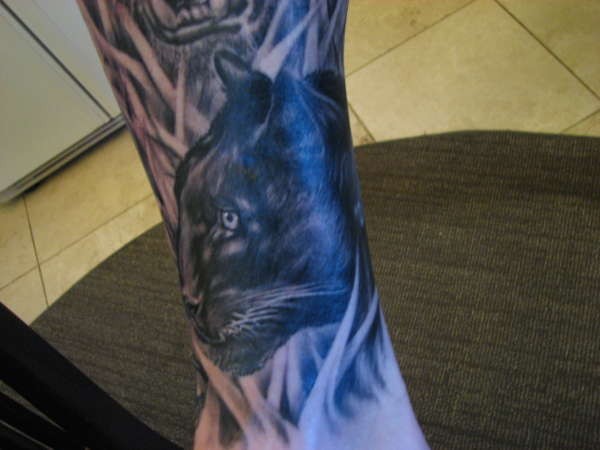 手臂黑色的豹头纹身图案
