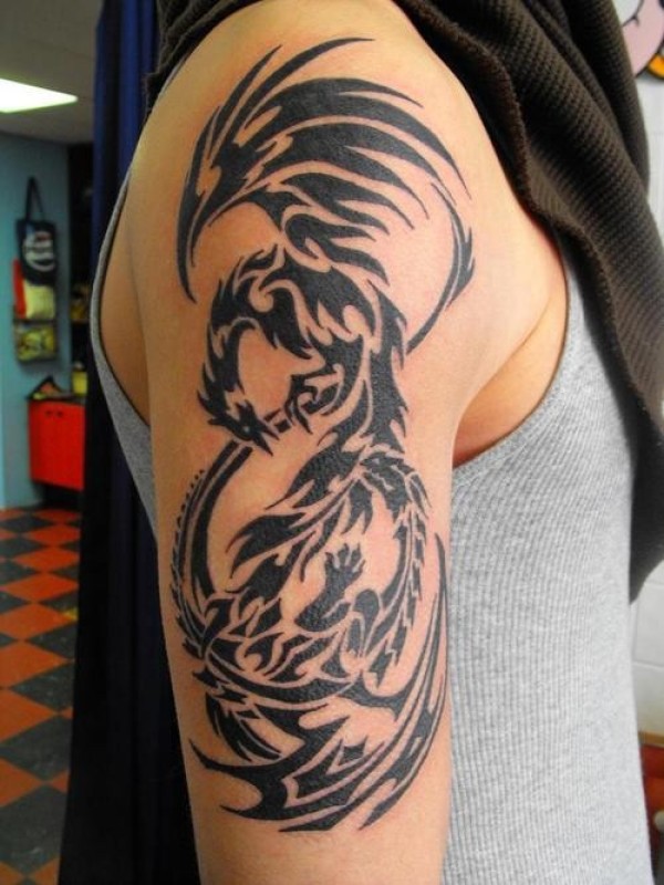 龙纹身手稿_一组老传统黑灰龙手稿纹身图案