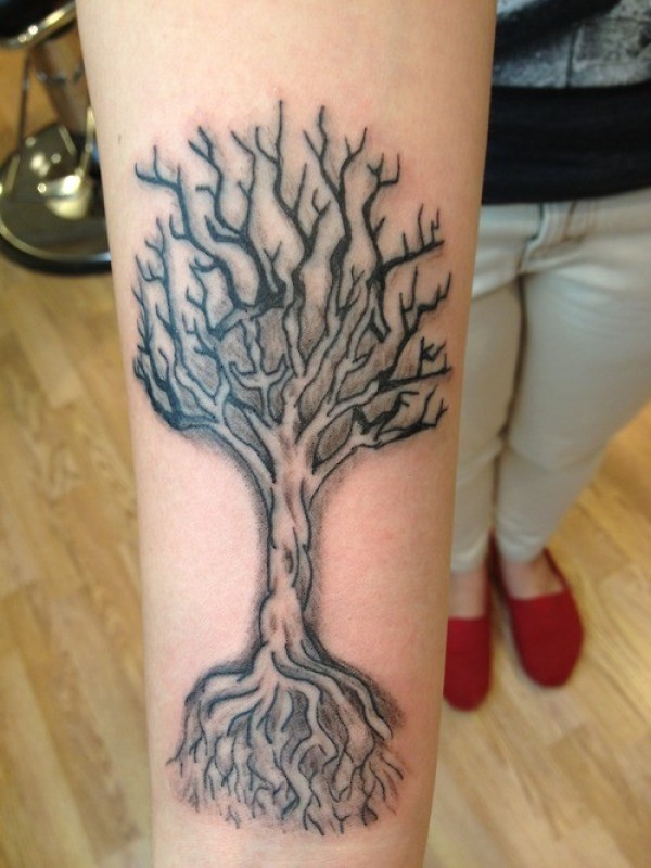 手臂上有根的树纹身图案