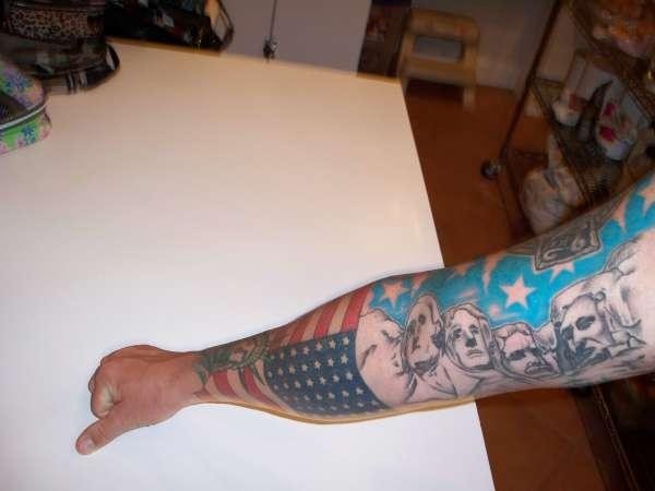美国国旗和美国总统肖像手臂纹身图案