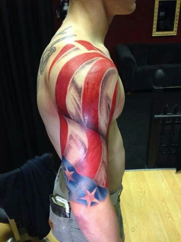 七彩的美国国旗手臂纹身图案