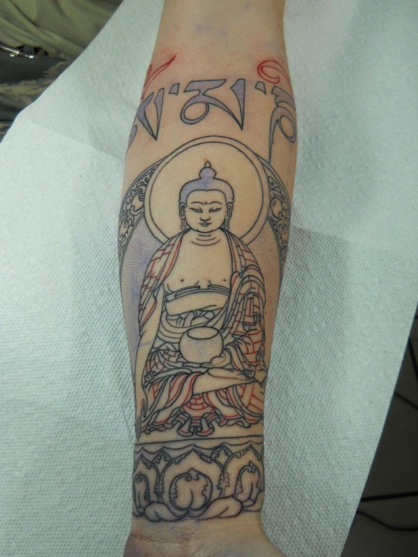 如来佛祖线条彩绘手臂纹身图案