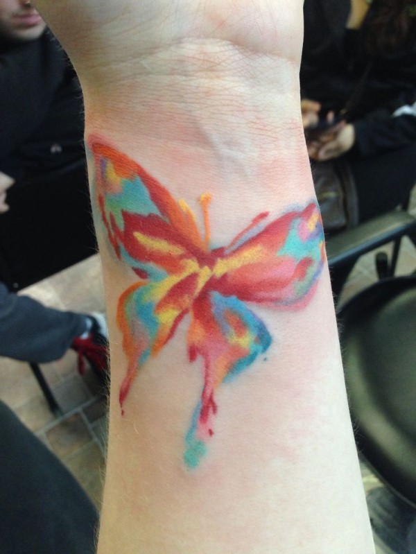 女孩手臂彩色的水彩蝴蝶纹身图案