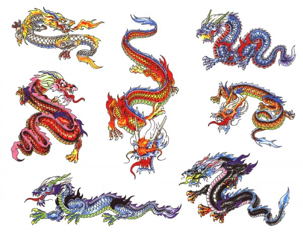 龙纹身手稿_一组老传统黑灰龙手稿纹身图案