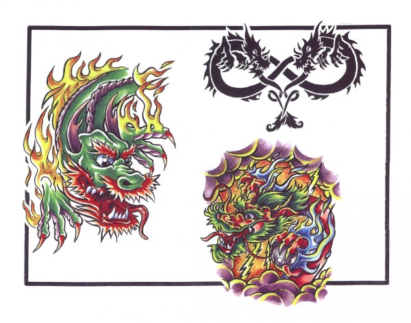 龙纹身手稿_一组老传统黑灰龙手稿纹身图案