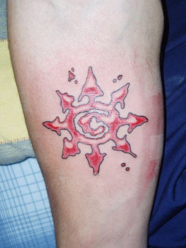 字母和星星轮廓的标志红色手臂纹身图案