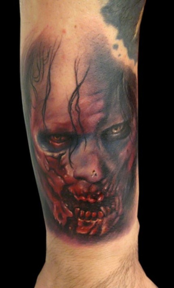 手臂上的可怕僵尸肖像彩绘纹身图案