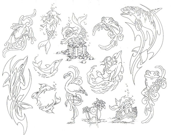 一组18张漂亮的欧美newschool动物纹身手稿图案