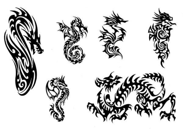 龙纹身手稿_一组老传统黑灰龙手稿纹身图案