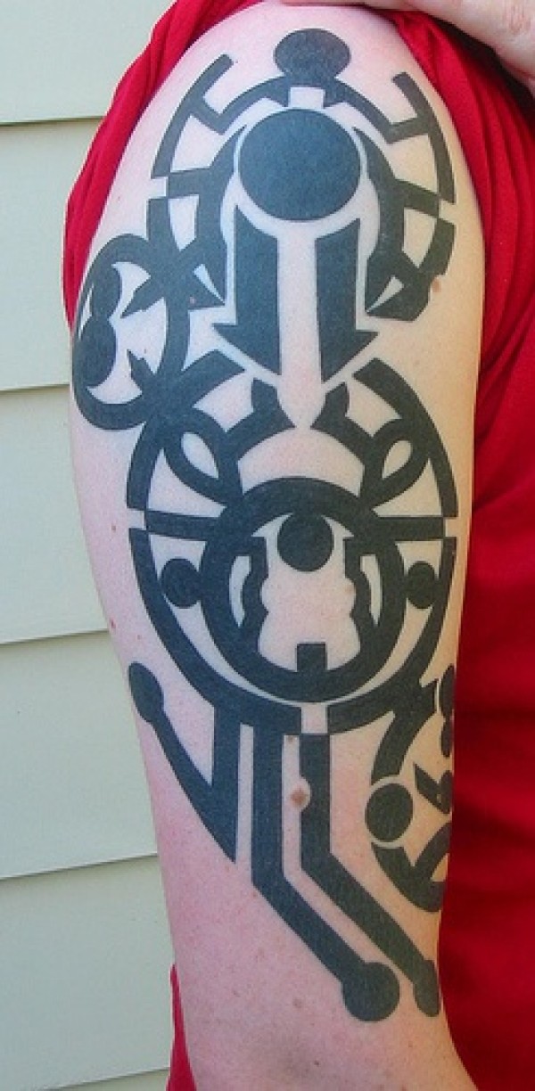 手臂黑色粗线条部落图腾纹身图案