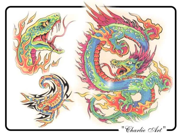 龙纹身手稿_一组老传统黑灰龙手稿纹身图案