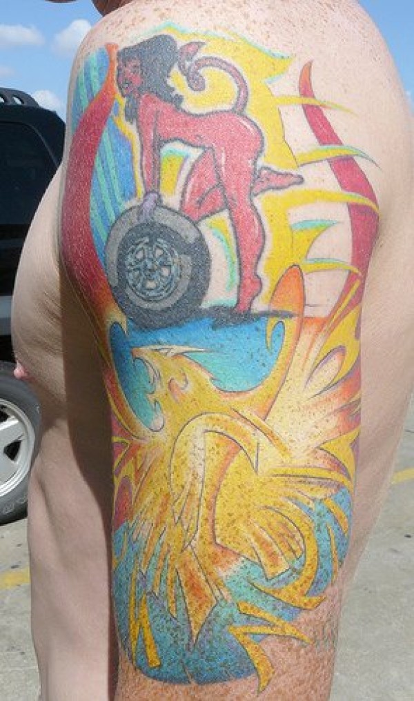 彩色的凤凰徽章手臂纹身图案