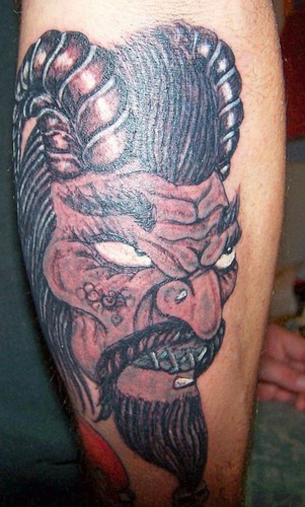 手臂有角的喜怒无常皱眉人像纹身图案
