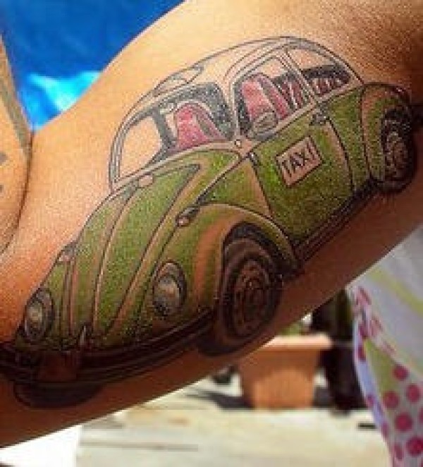 手臂上的大众绿色出租车纹身图案