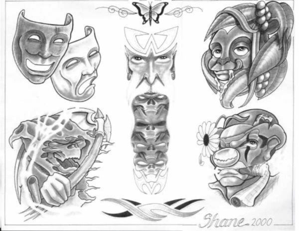 能面万媚纹身手稿_52张日式能剧面具纹身手稿图案素材欣赏