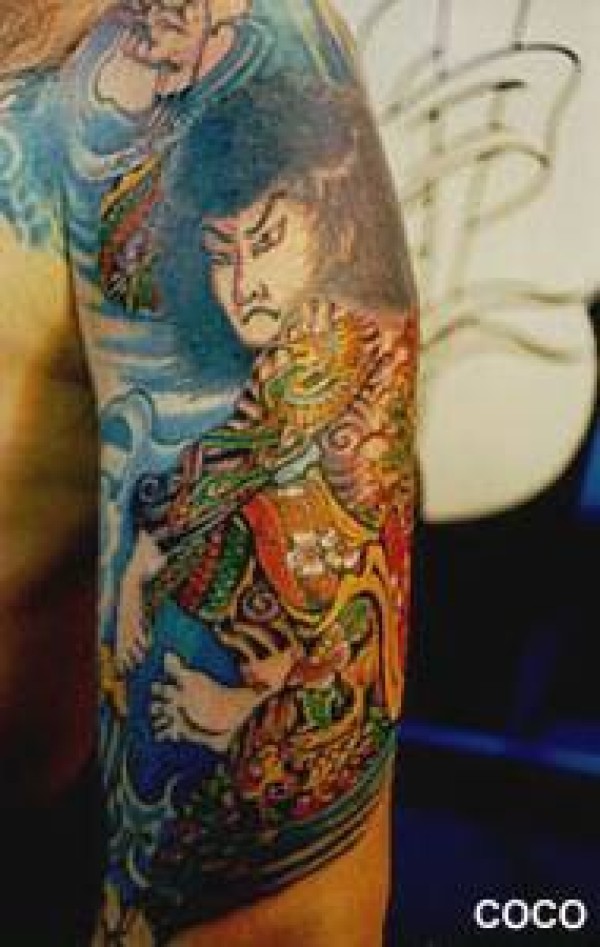 大臂丰富多彩的歌舞伎艺术家纹身图案