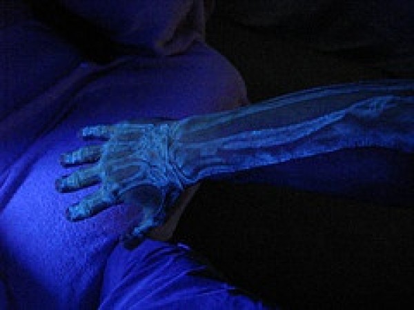 手臂上的骨骼荧光纹身图案