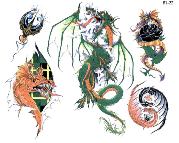 龙纹身手稿_一组老传统黑灰龙手稿纹身图案