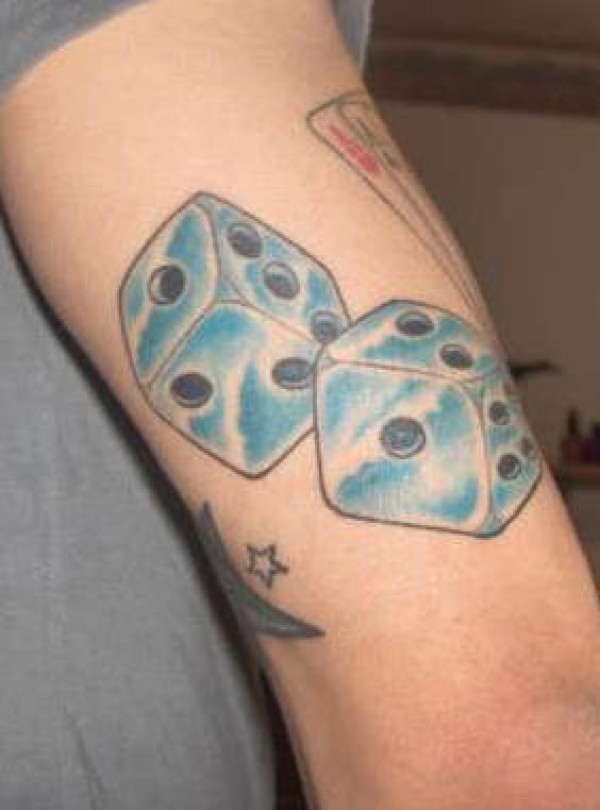 蓝色的冰块骰子纹身图案