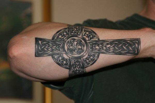 凯尔特风格的十字架小臂纹身图案