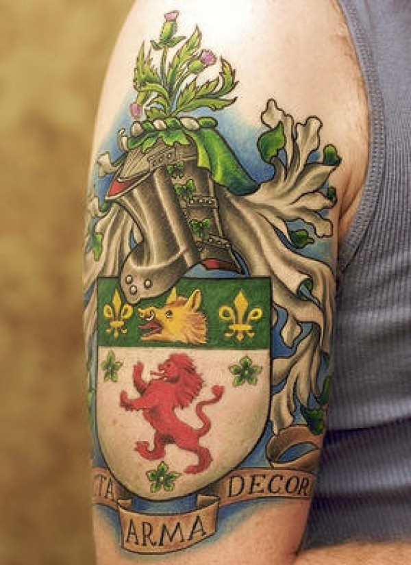 大臂彩色的家庭图腾徽章纹身图案