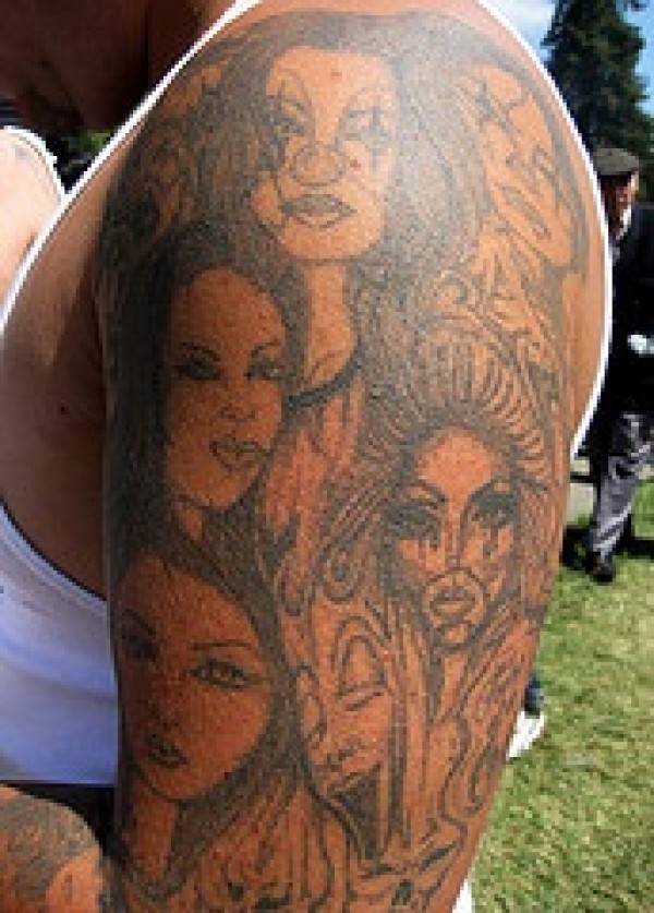 大臂一群小丑女孩肖像纹身图案