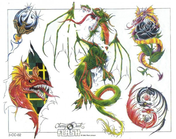 龙纹身手稿_一组老传统黑灰龙手稿纹身图案