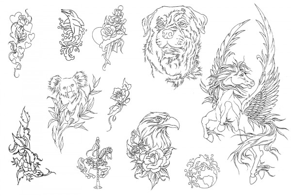 一组18张漂亮的欧美newschool动物纹身手稿图案