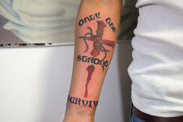 流血的十字架字符手臂纹身图案